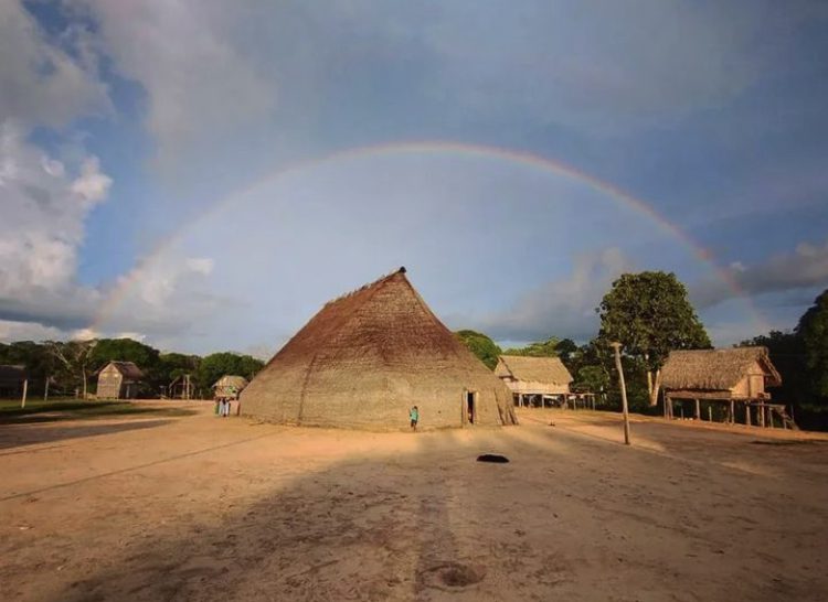 Além disso, usamos um cordão atravessado no septo nasal, também feito de caramujo aruá. Mesmo após séculos de contato com os não-indígenas (nawa), mantivemos o formato tradicional das nossas aldeias, que é composto por uma grande maloca e casas individuais por famílias ao redor. A maloca grande é o centro do convívio comunitário e o lugar onde passamos boa parte do nosso dia. As casas unifamiliares, por sua vez, são onde cada família guarda seus pertences e realiza atividades mais íntimas.